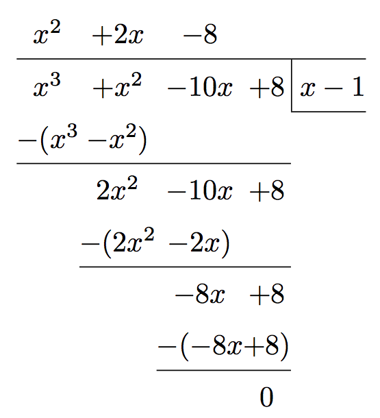 $${x}^{3}+{x}^{2}-10x+8=(x-1)\cdot q(x)$$