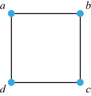 إذا نظرنا الى مجموعة الأضلاع سنلاحظ أن الأربعة أضلاع الأولى تربط بين الرؤوس , , , حيث أن الرأس له ضلع مشترك مع , الرأس له ضلع مشترك مع , الرأس له ضلع مشترك مع والرأس له ضلع مشترك مع . وهذا يعني أنه يمكننا رسم هذا الجزء من المُخطط كشكل رباعي رؤوسه , , , :