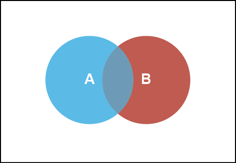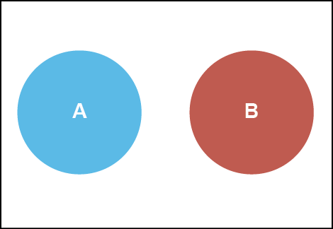 أما إذا لم يكن هناك عنصر مشترك بين المجموعتين و ، فيمكننا بدلاً من ذلك توضيح المجموعتين باستخدام مخطط ڤن-Venndiagram التالي: